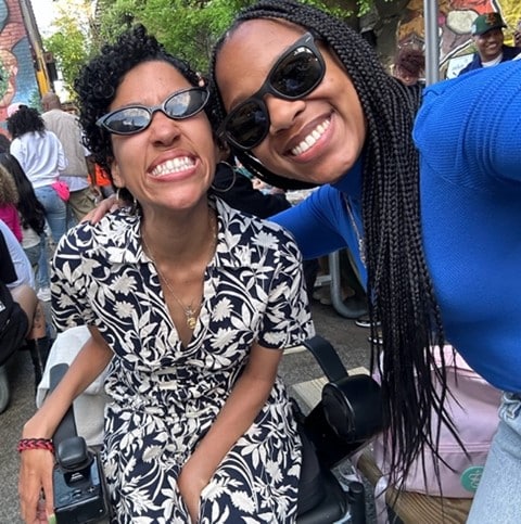 young person with ALS and her friend